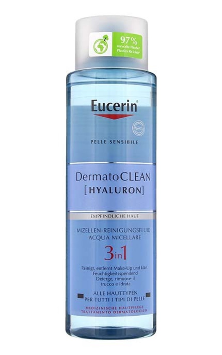 Eucerin DermatoClean мицеллярный очищающий флюид 3in1 - это освежающее очищающее средство, которое удаляет весь водорастворимый макияж с глаз и лица, помогает коже дышать, быстро и просто в использовании, протестировано и одобрено для чувствительной кожи и кожи вокруг глаз. Содержит инновационную комбинацию активных ингредиентов, образованных комплексом APG - эффективным и в то же время бережным очищающим комплексом. Гликоглицерин – натуральный увлажняющий активный ингредиент, гиалуроновая кислота – активный ингредиент в средствах по уходу за кожей, обладающий отличной способностью притягивать воду. В результате применения кожа лица и вокруг глаз чистая и успокоенная, кожа заметно мягче и эластичнее, лучше подготовлена к процессу регенерации.