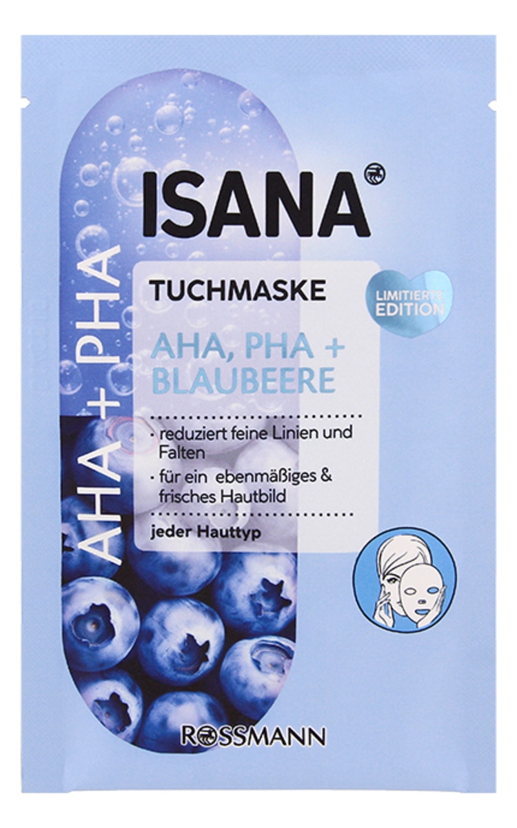 Отзывы ISANA AHA, PHA + Blaubeere тканевая маска для лица, 1шт.