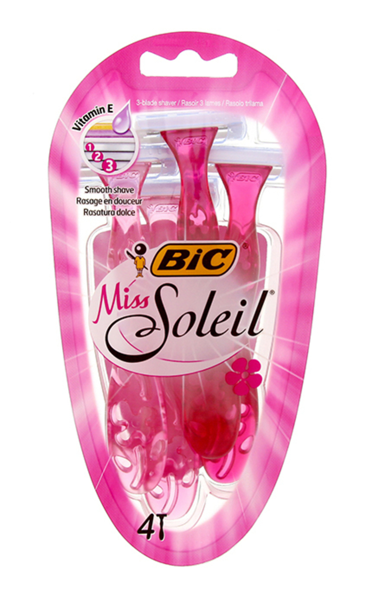 Станок для бритья Bic Miss Soleil с головкой из трёх лезвий для нежного и гладкого бритья.