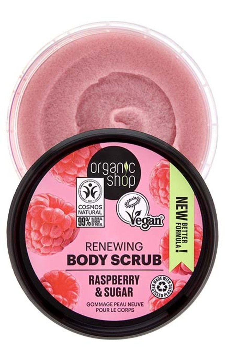 Organic Shop cкраб для тела Raspberry Cream с органическим экстрактом малины и тростниковым сахаром нежно отшелушивает кожу, способствует обновлению клеток кожи, улучшает текстуру, питает и делает ее шелковистой, гладкой и мягкой. Органический экстракт малины питает и увлажняет кожу, улучшает текстуру и тон кожи. Тростниковый сахар отшелушивает и освежает кожу, делая ее увлажненной и шелковистой.