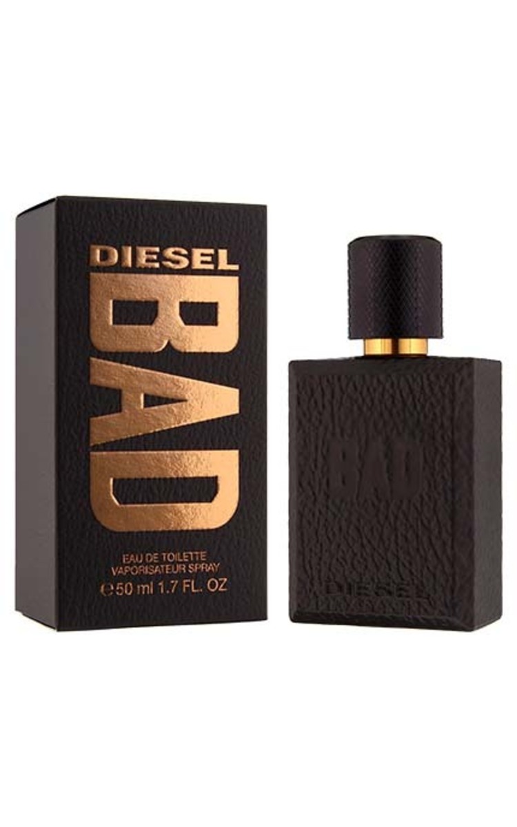 Diesel Bad был объявлен смелым и утонченным, захватывающим и свежим древесным ароматом. Это первый аромат, в котором сочетаются нотки табака и икры, раскрывая свежую, соленую сторону древесных нот. Парфюмеры Анне Флипо и Карлос Бенаим создали Bad как игру обольщения, которая начинается с захватывающей верхней ноты цитрусовых и прохладных специй. Бергамот кусает свежестью, оживленной кардамоном и лавандой. Икра придает провокационный и эротический оттенок, как пот на отполированном мужском теле. Мужские и грубые ноты табака и ноты корня оррисы придают композиции теплоту. Лицом аромата является американский актер и модель Бойд Холбрук. Дизайн флакона создает типичный образ плохого парня, напоминающий байкерскую кожаную куртку. Текстура, которая выглядит как кожа, на самом деле представляет собой микрогравированное стекло с использованием техники, разработанной Pochet du Courval. Прозрачный логотип Bad открывает цвет жидкой меди.