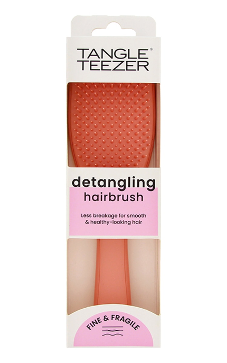 Расческа Tangle Teezer The Wet Detangler Fine&Fragile Sweet Cinnamon – сочетание двух знаменитых моделей The Wet Detangler (с ручкой) и Fine&Fragile (с мягкими зубчиками). Расческа создана для тонких, окрашенных и ослабленных волос. Ее двухуровневые зубчики на 30% мягче, чем у классической расчески The Original, бережно и эффективно распутывают влажные пряди от корней до кончиков, не царапая кожу головы и оказывая массажный эффект. Благодаря ручке расческой можно пользоваться даже в душе, с ее помощью удобно распределять бальзамы и маски для волос. Не используйте с феном.