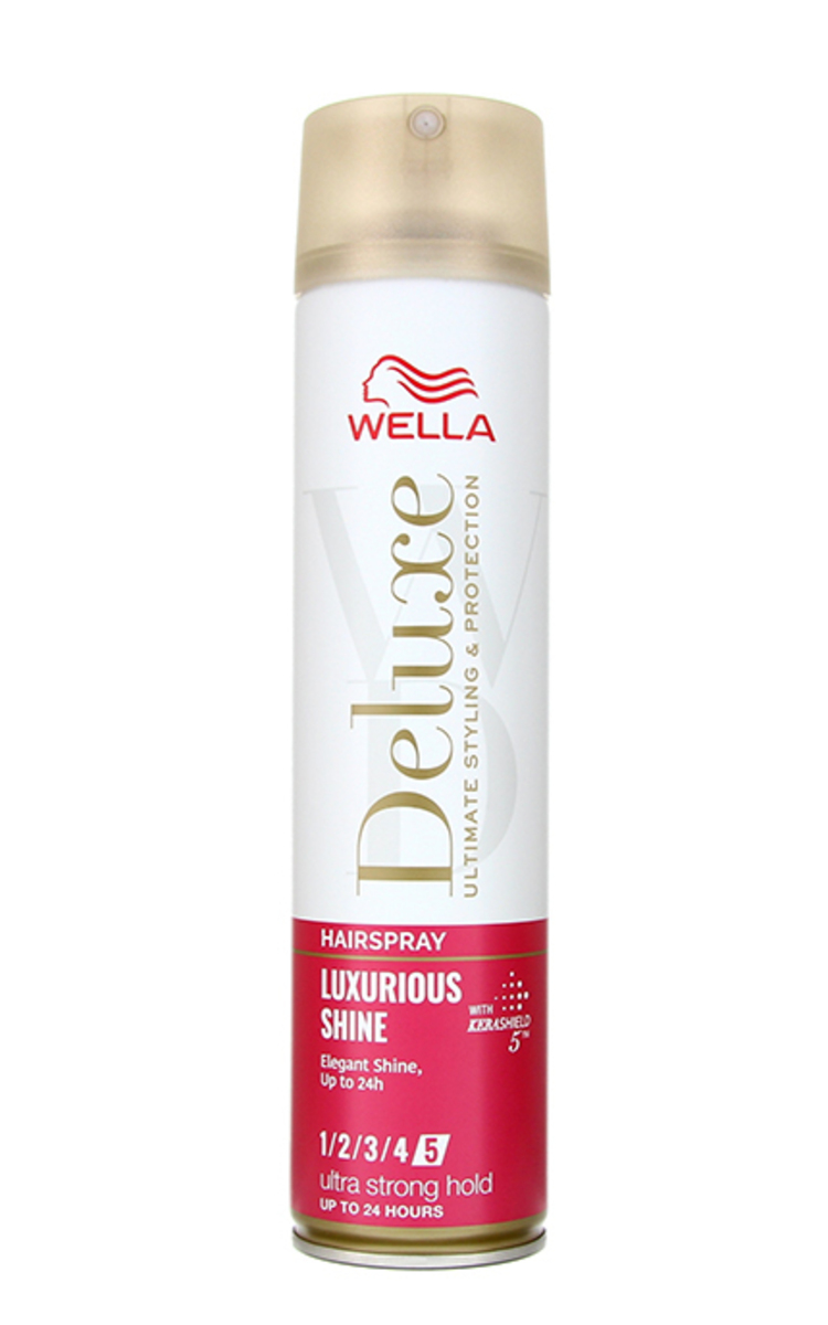 Коллекция Wella Deluxe содержит масло жожоба и провитамин B5. Этому маслу приписываются увлажняющие волосы свойства, и его получают методом холодного прессования семян. Оно содержит большое количество витаминов и минералов, которые питают волосы, а также витамины С, В и Е, медь и цинк. Провитамин B5 впитывается в волосы, увлажняя и укрепляя волосы, а также образует на них защитный слой, облегчающий расчёсывание. Лак ультрасильной фиксации с кератином Kerashield 5 придает волосам здоровый блеск, сохраняя их естественную форму и шелковистость. Лак улучшает волосы 5 способами: смягчает, разглаживает, придает блеск, защищает от ультрафиолетовых лучей и поддерживает баланс влаги.
