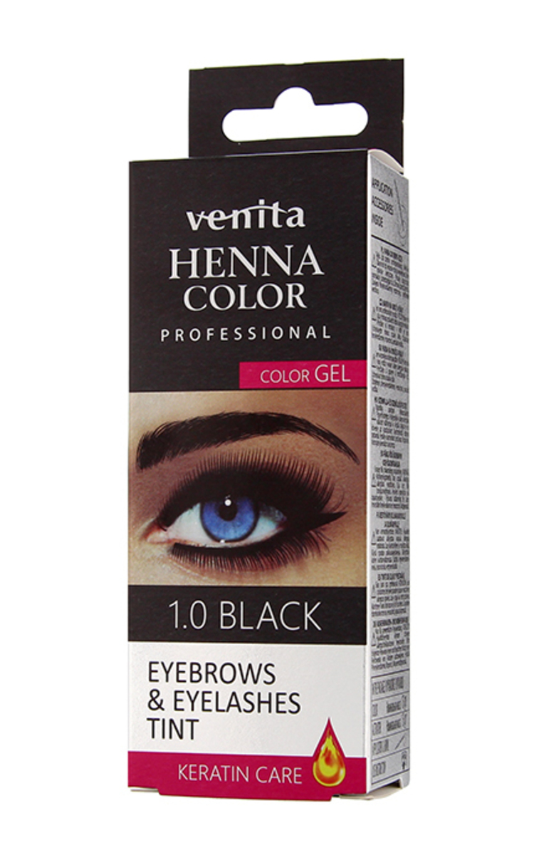HENNA COLOR Uzacu un skropstu krāsa uz hennas bāzes, 1.0 Melna 1 gab.